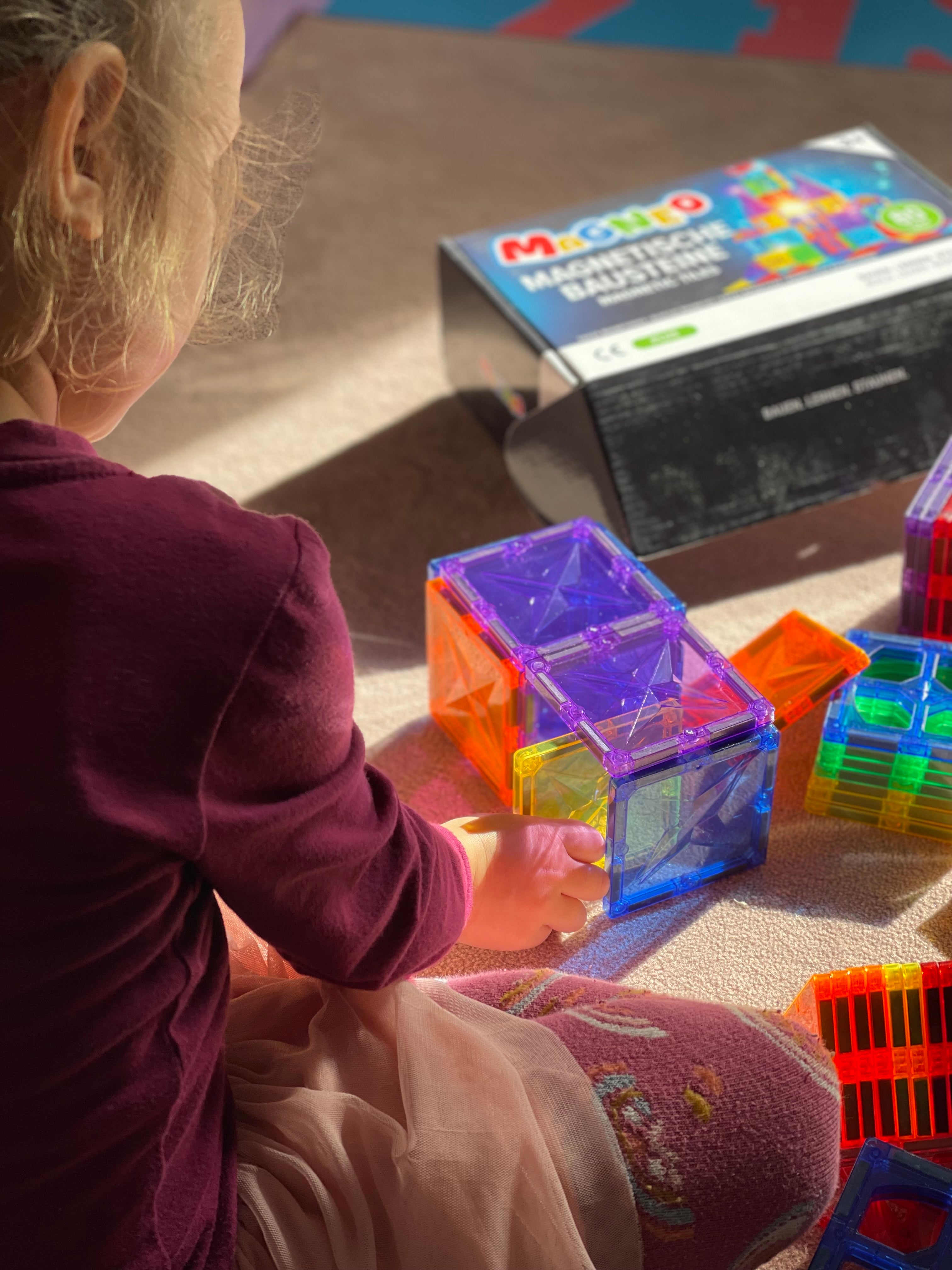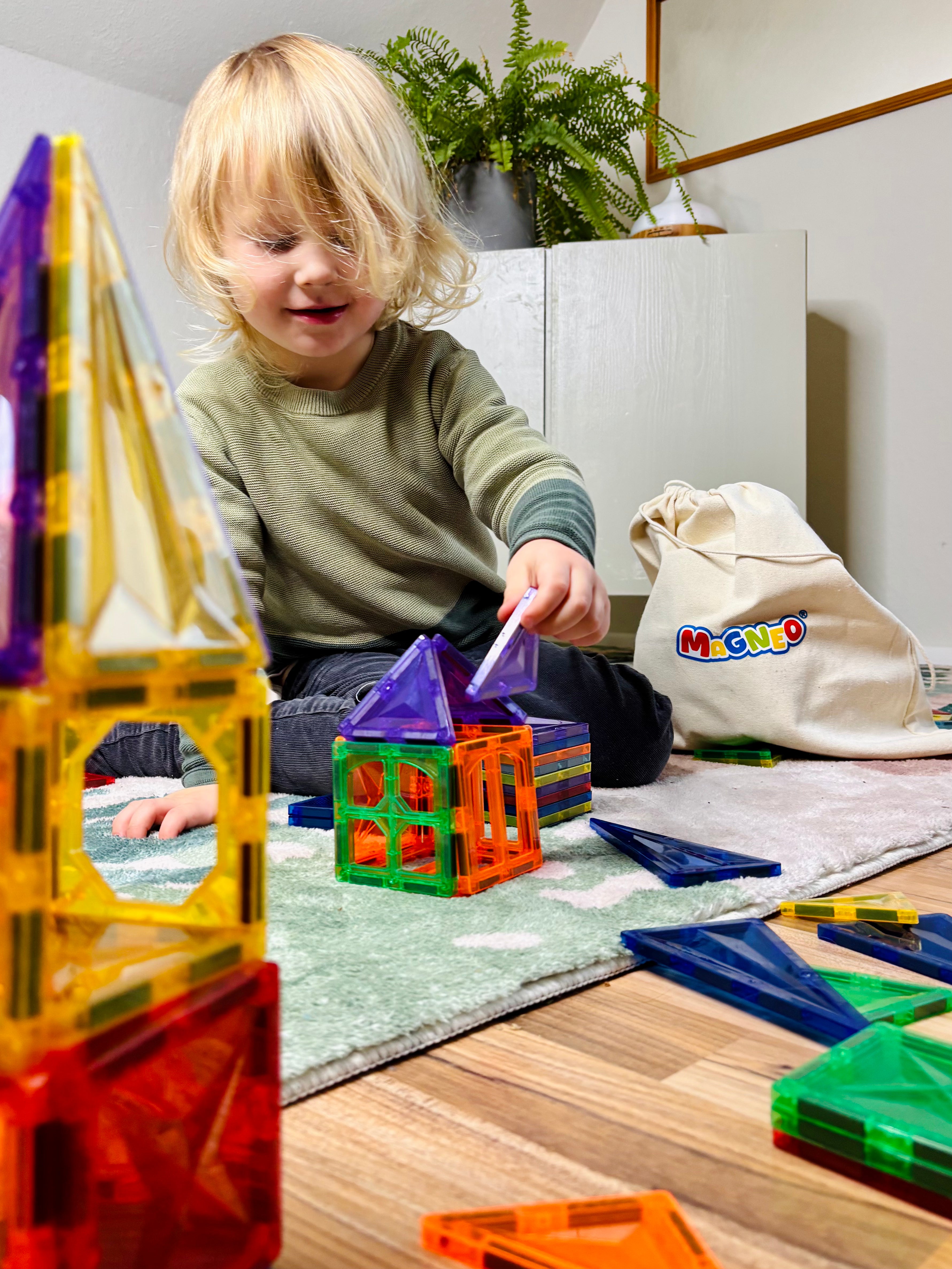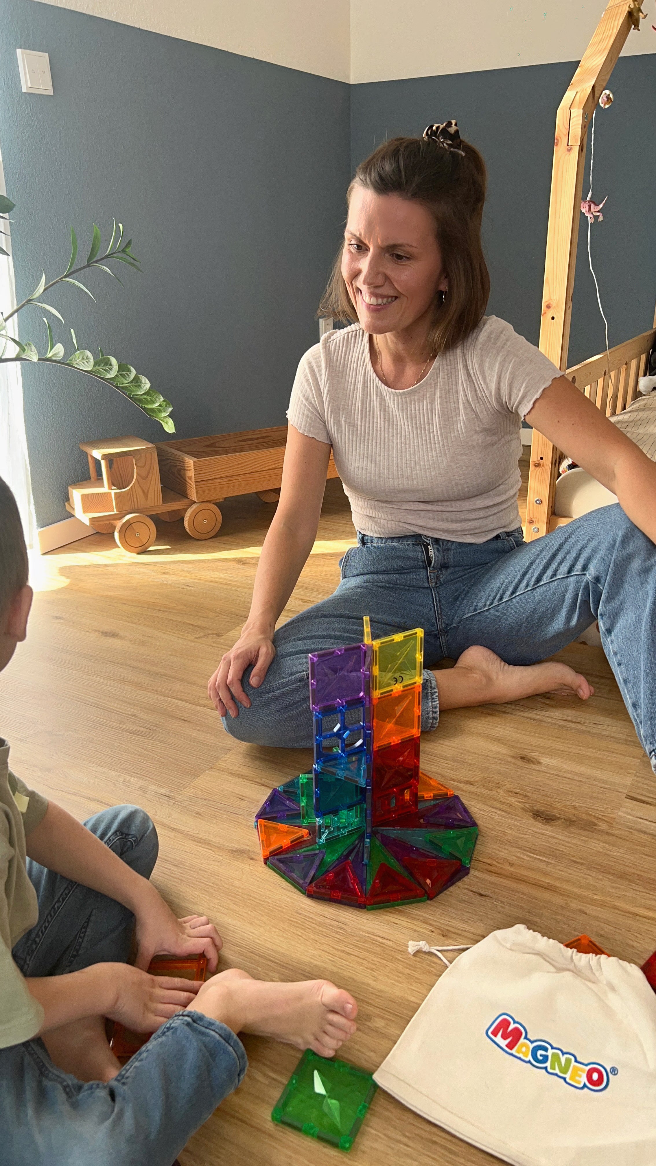 Magneo® steht für magnetische Bausteine, die Kindern ab 3 Jahren schnelle Erfolgserlebnisse geben und Eltern alltagstaugliche Ruhefenster schaffen. Unsere eigenentwickelten SafeCapsule™-Magnete sind fest im Baustein gekapselt – für verlässlichen Halt und sorgenfreies Spiel.